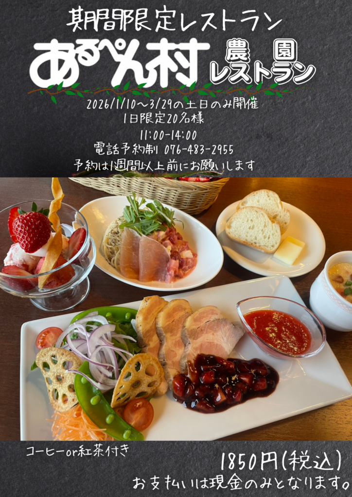 4月~8月毎日営業9月~11月毎週水曜日12月~3月中旬毎週火、水曜日